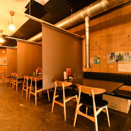 【宴会など様々なシーンに◎】テーブル席は7卓ございます。テーブル間は仕切りがあるので、人目を気にせずごゆっくりお楽しみいただけます◎会社帰りやご友人同士の宴会はもちろん、女子会やご家族でのお食事など様々なシーンでご利用いただけます♪